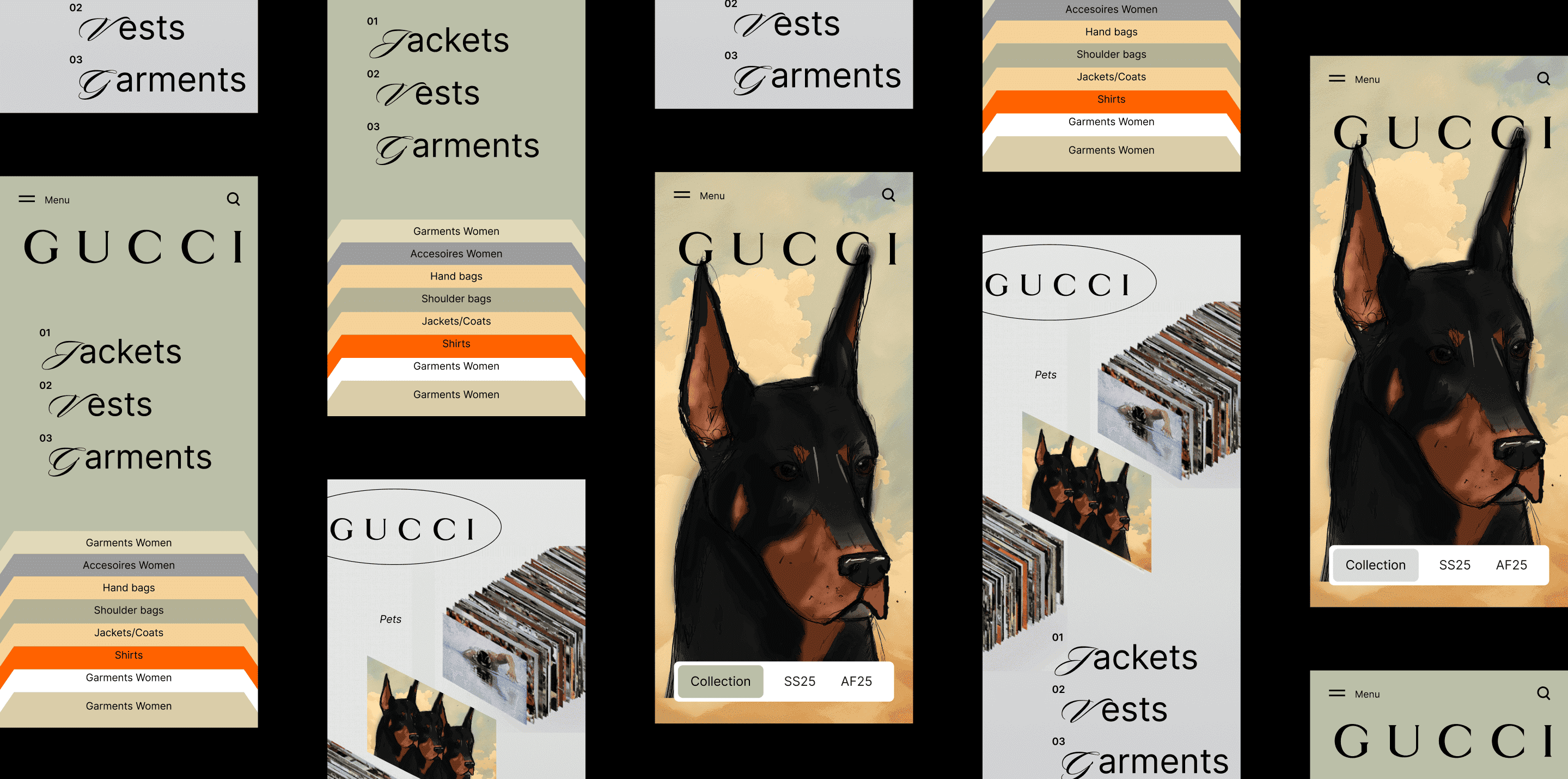 I developed a concept for Gucci Pets, exploring how the brand could extend its world into the digital space. My role focused on art direction, supported by UI design and custom illustrations to bring the concept to life.